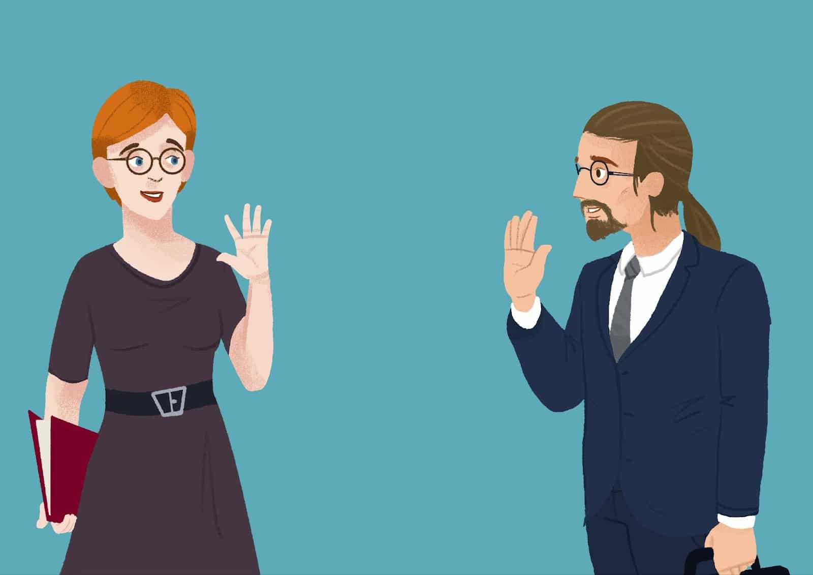 2. What do these individuals say to their conversation partners right after greeting them?