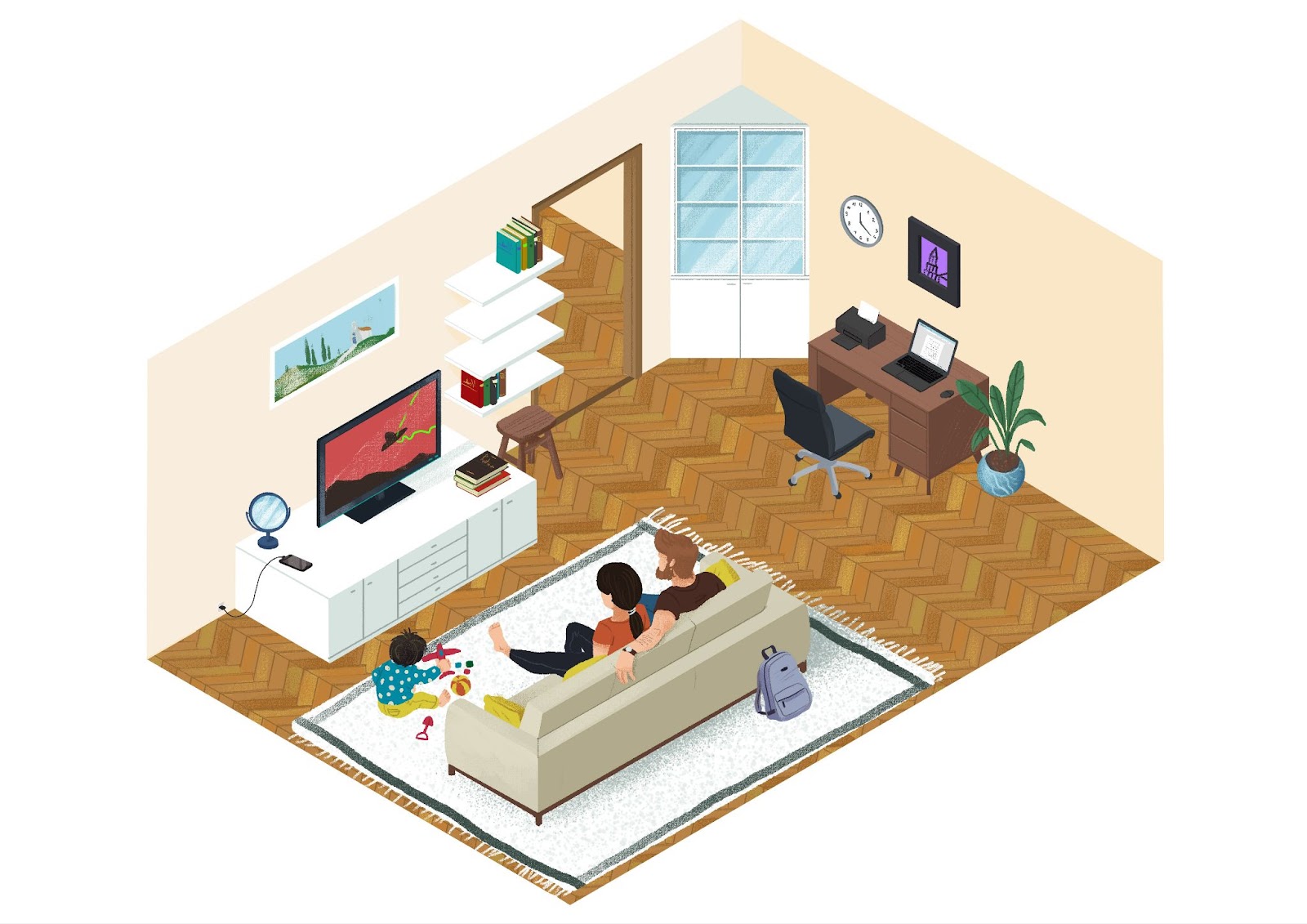 Ovo je obitelj Zlarin. Mama se zove Jelena, tata se zove Igor, a njihovo dijete se zove Lara. Ona je još malena. Jelena je liječnica, a Igor je arhitekt.