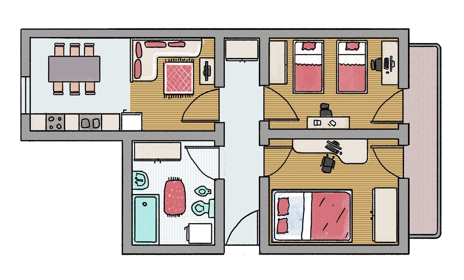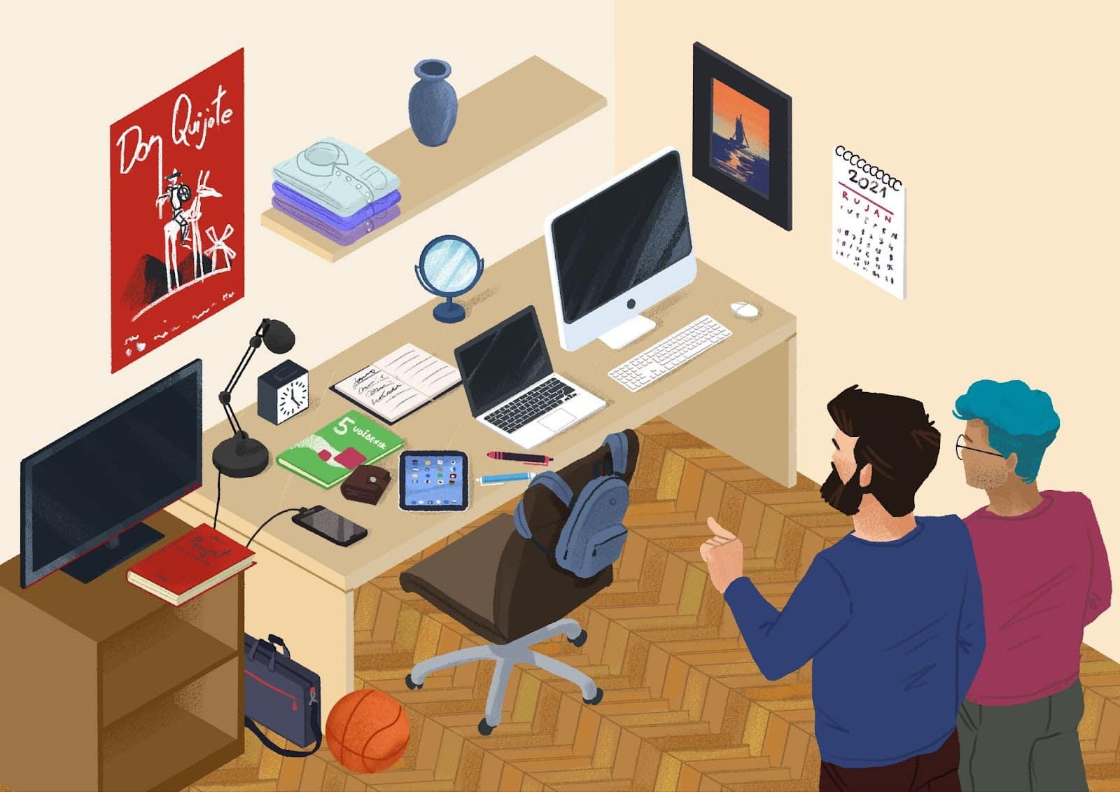 👥 Make a dialogue with your classmate. Talk about your apartment/house. Ask each other about the floor plan, layout, and describe where the things are in one of the rooms. You need to use adjectives when possible. This is a combination of the vocabulary that you learned (mostly) in Unit 4 and Unit 10. Submit your video recording online.