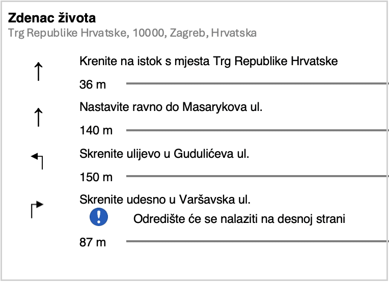 👥 Look at the following attractions in Zagreb. Choose one of them to be your starting point and one that you want to go to. Meet with your classmate. Tell them where you are and guide them to the destination that you want to visit. Don’t mention the address of your destination or the name of the attraction. Your classmate should guess where you took them by listening closely to the directions and following on the map. When your classmate guesses where you took them, they will say if they really want to visit that place as well, and why.