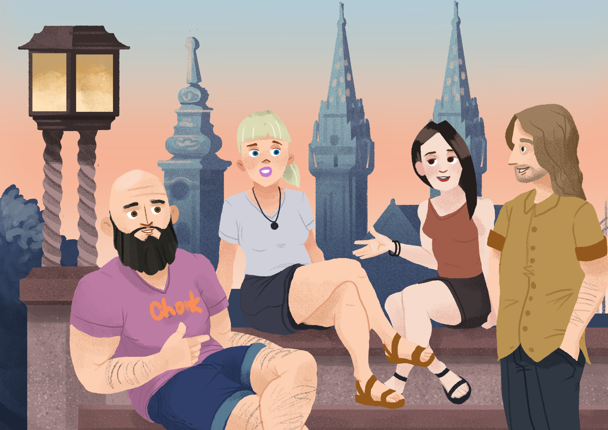 | James: | Dobro pitanje. Kad sam odlučio provesti godinu dana u Hrvatskoj, prvo sam mislio otići u Zagreb. Mislio sam, to je glavni grad, američka ambasada je u Zagrebu i možda je bolje i sigurnije biti u glavnom gradu… No, onda mi je jednom prilikom moj profesor pričao više o Splitu. On je bio ovdje poslom i rekao mi je ako imam priliku da je bolje da idem u Split. Sad mi je drago da sam ga poslušao. |