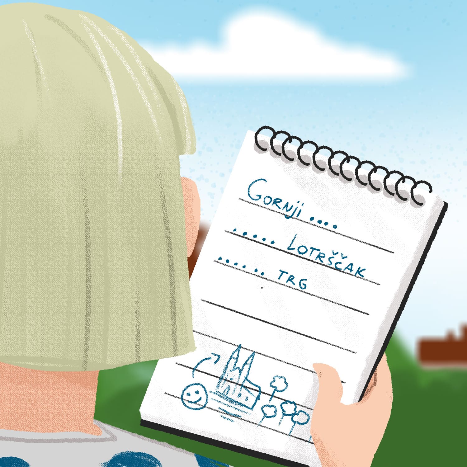 Moramo posjetiti Zagreb. Zagreb je lijep grad. Ima staru crkvu, veliko jezero i lijepi trg. Crkva se zove sveti Marko, jezero se zove Jarun, a trg se zove Trg bana Josipa Jelačića.