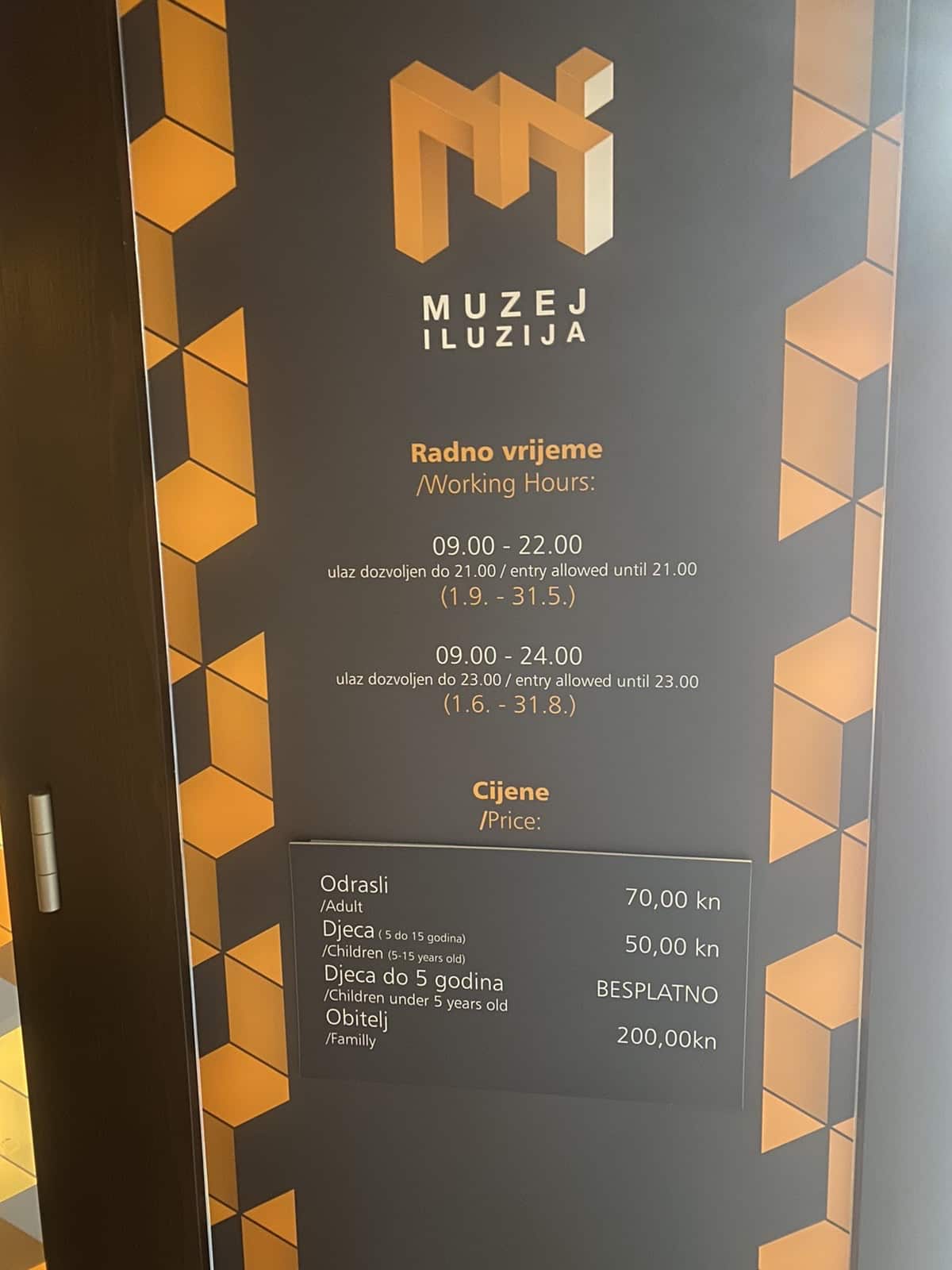 U koliko sati otvara Muzej iluzija?Muzej otvara u 09:00 (devet ujutro). U koliko sati zatvara muzej?Muzej zatvara u 22:00 (deset navečer). Želiš li posjetiti ovaj muzej?Da, želim posjetiti muzej. Ne, ne želim posjetiti muzej. |