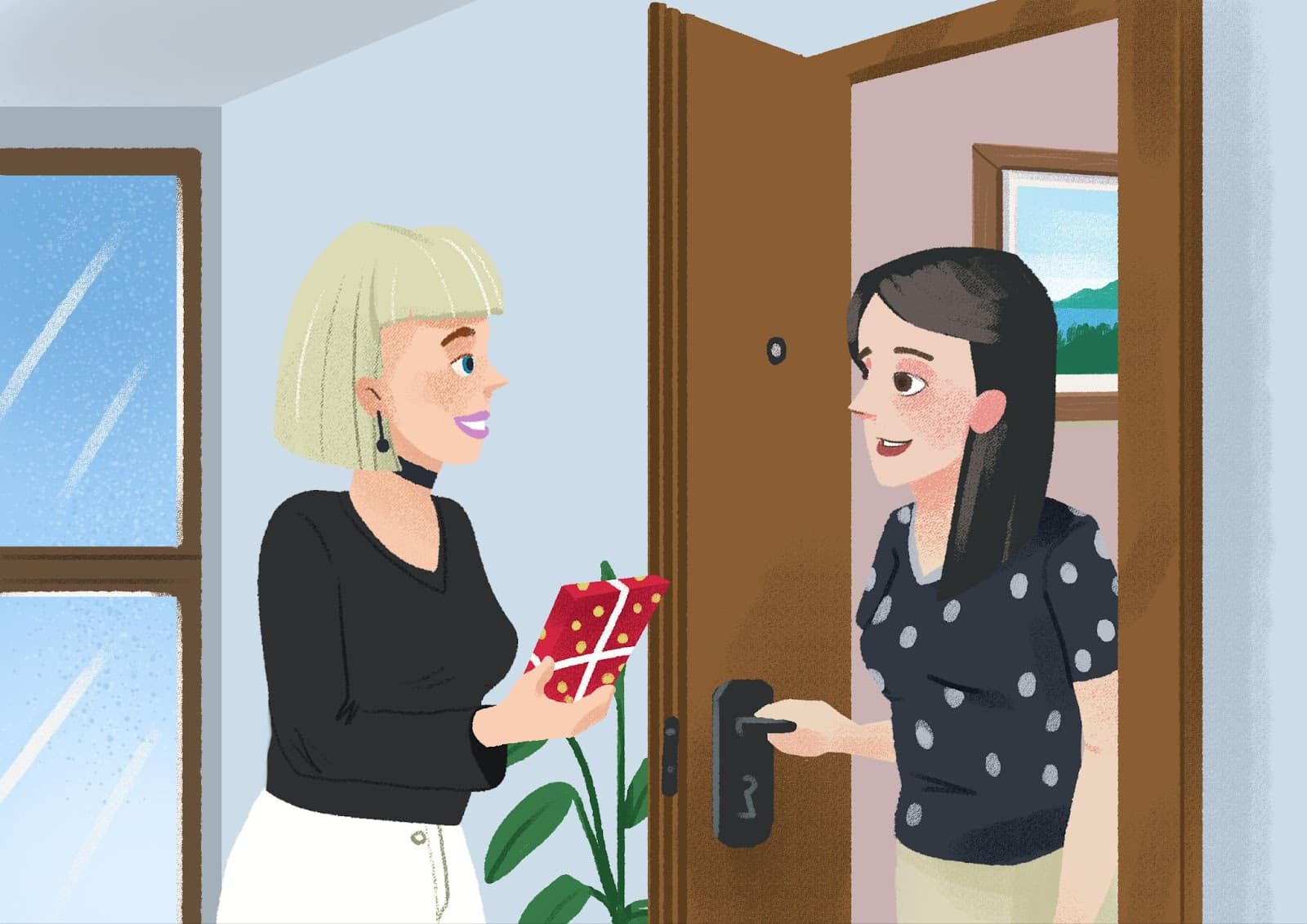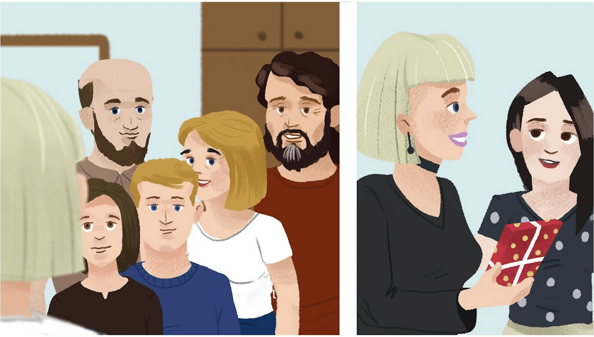 🔊 Listen to dialogue one. Sandra’s younger sister is celebrating her 13th birthday. Laura has been invited to the birthday party. Arriving at Sandra’s place, Laura is getting to know Sandra’s family members. Listen to the dialogue and answer the questions.