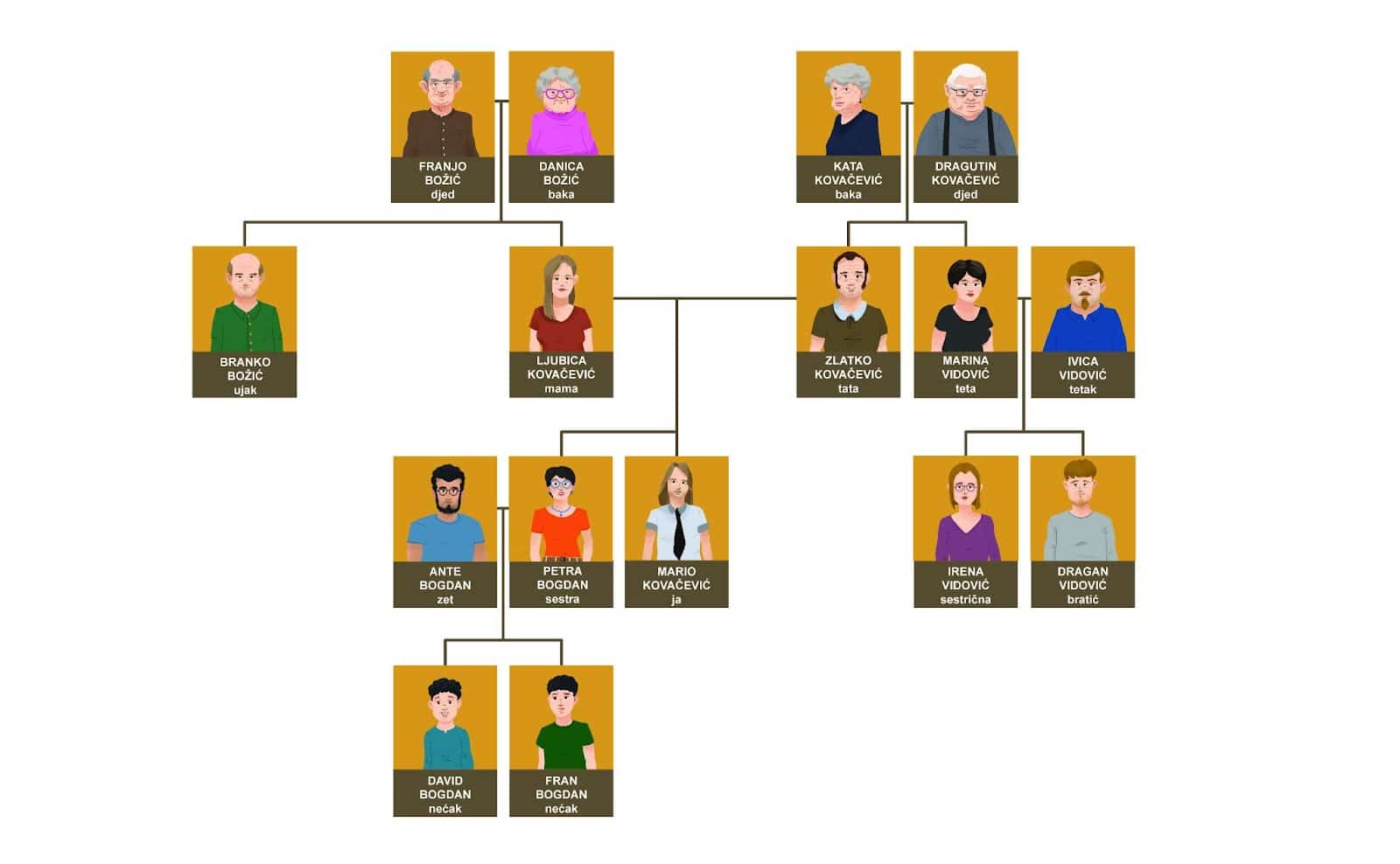 Look at the family tree and answer the questions related to Davor and his family.