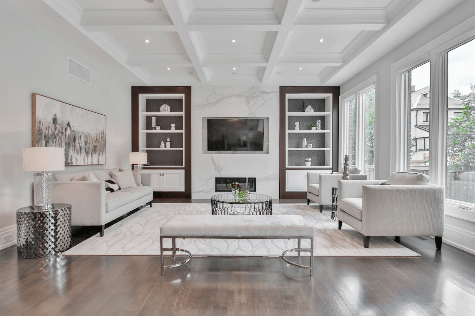 Each of you should choose one picture of a living room: slika (1) or slika (2). Don’t look at the picture you didn’t choose. Describe your picture (without showing it) to your classmate. Say where things are in the living room. While your classmate presents his/her picture, mark only the furniture items that also appear in your picture. When you are both done presenting, make a list of all the things you have in common. You should also write where those things are placed in the room.