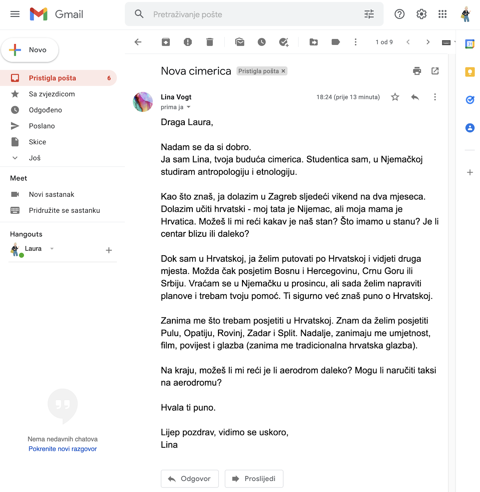 7  | Što njezina cimerica studira u Njemačkoj?  |
