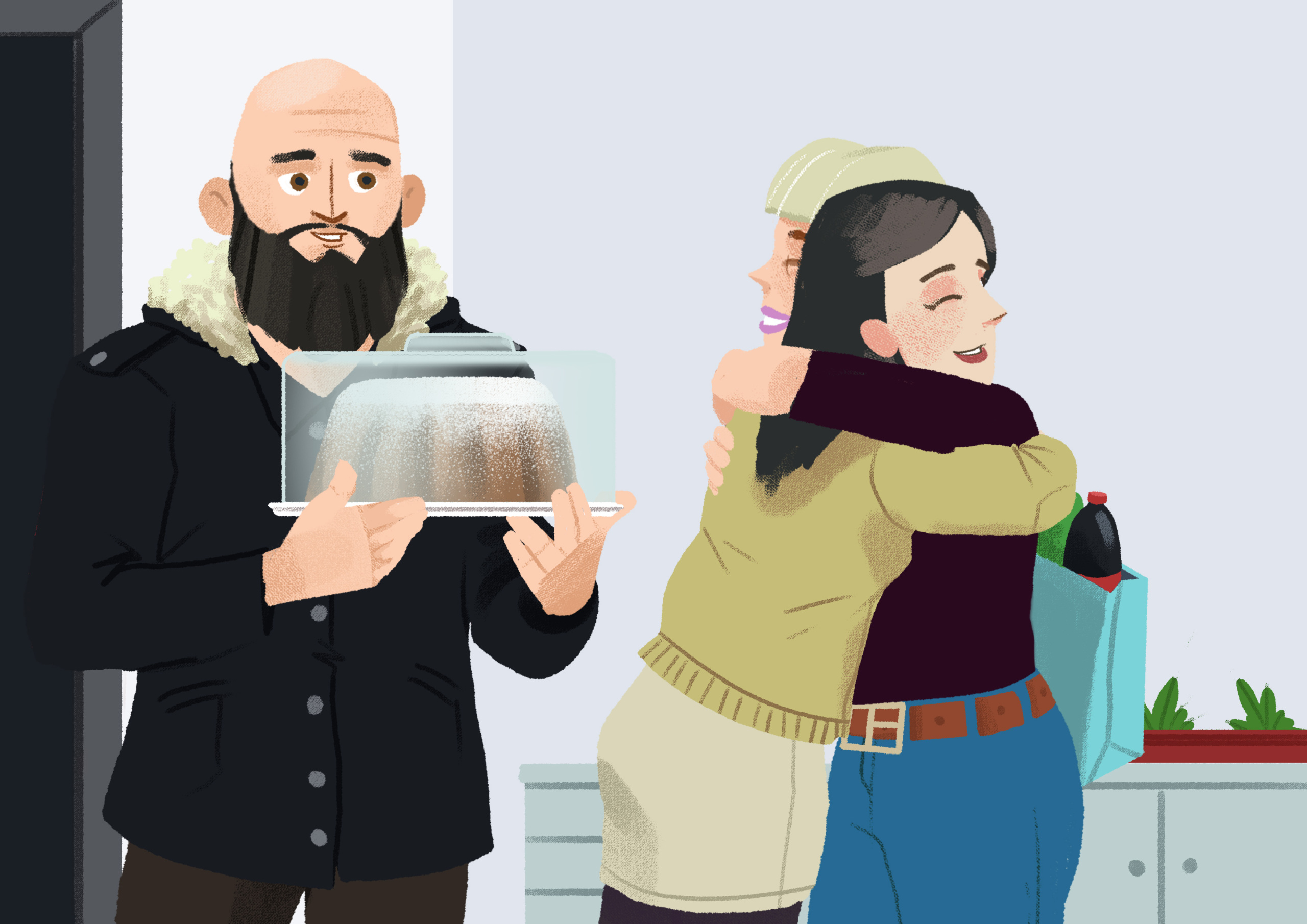 | Laura: | Hvala, niste trebali! Sve sam kupila. Mario i ja kuhamo cijeli dan. |