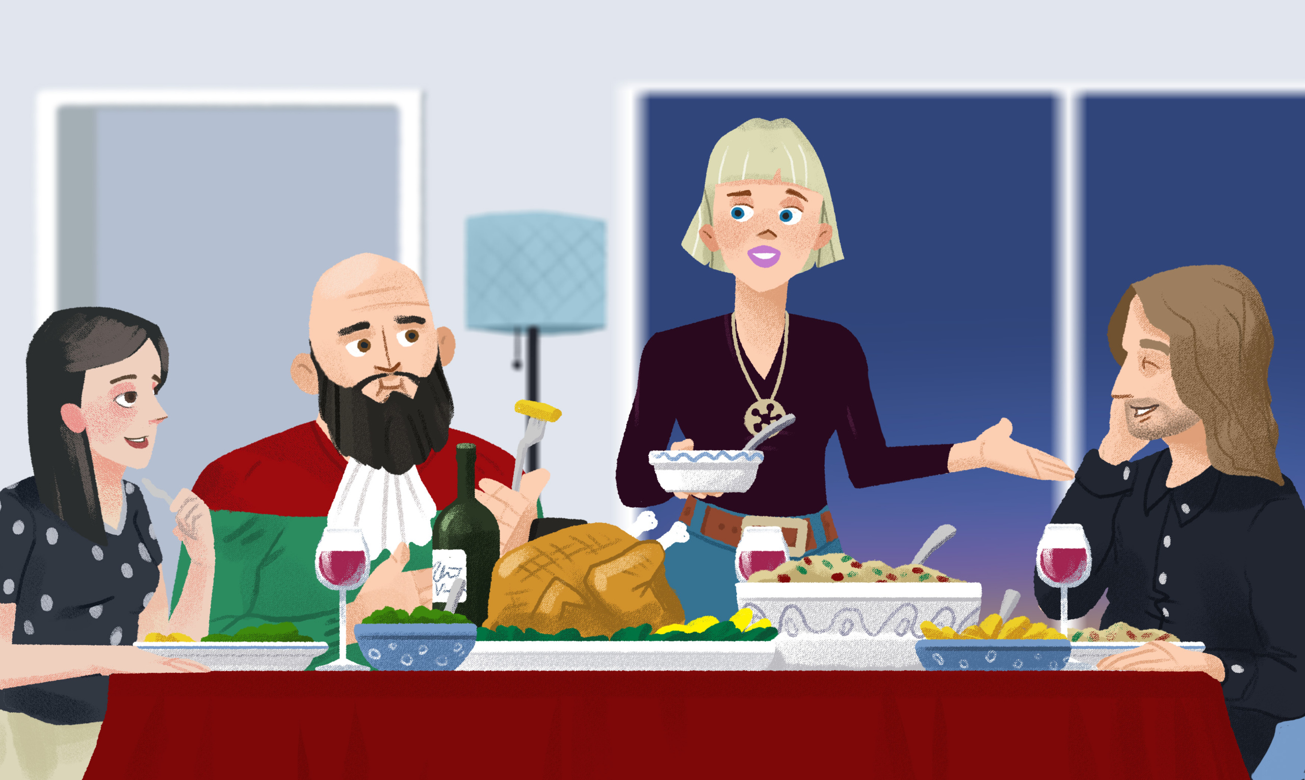 | Laura: | Tada je ove godine američki Dan zahvalnosti. Želim pripremiti tradicionalnu američku večeru za vas. |