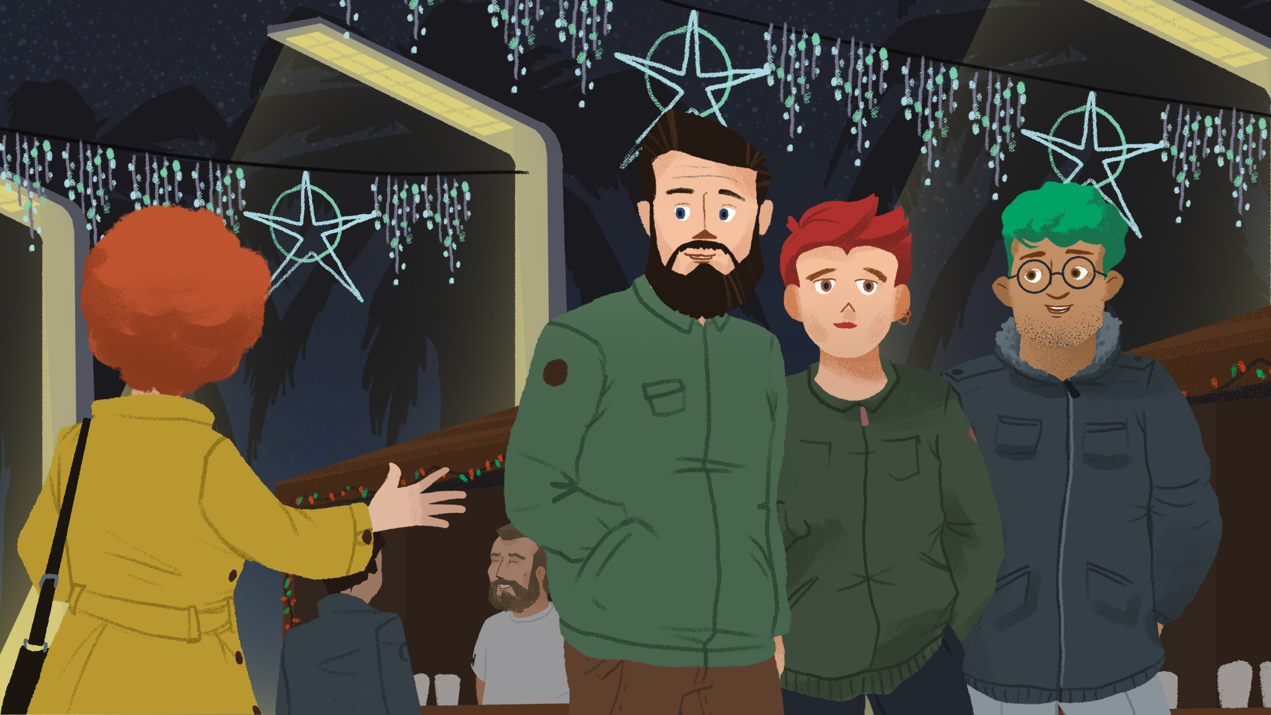 James: Šteta što su ove male trgovine zatvorene. Želim kupiti suvenire, nešto božićno.