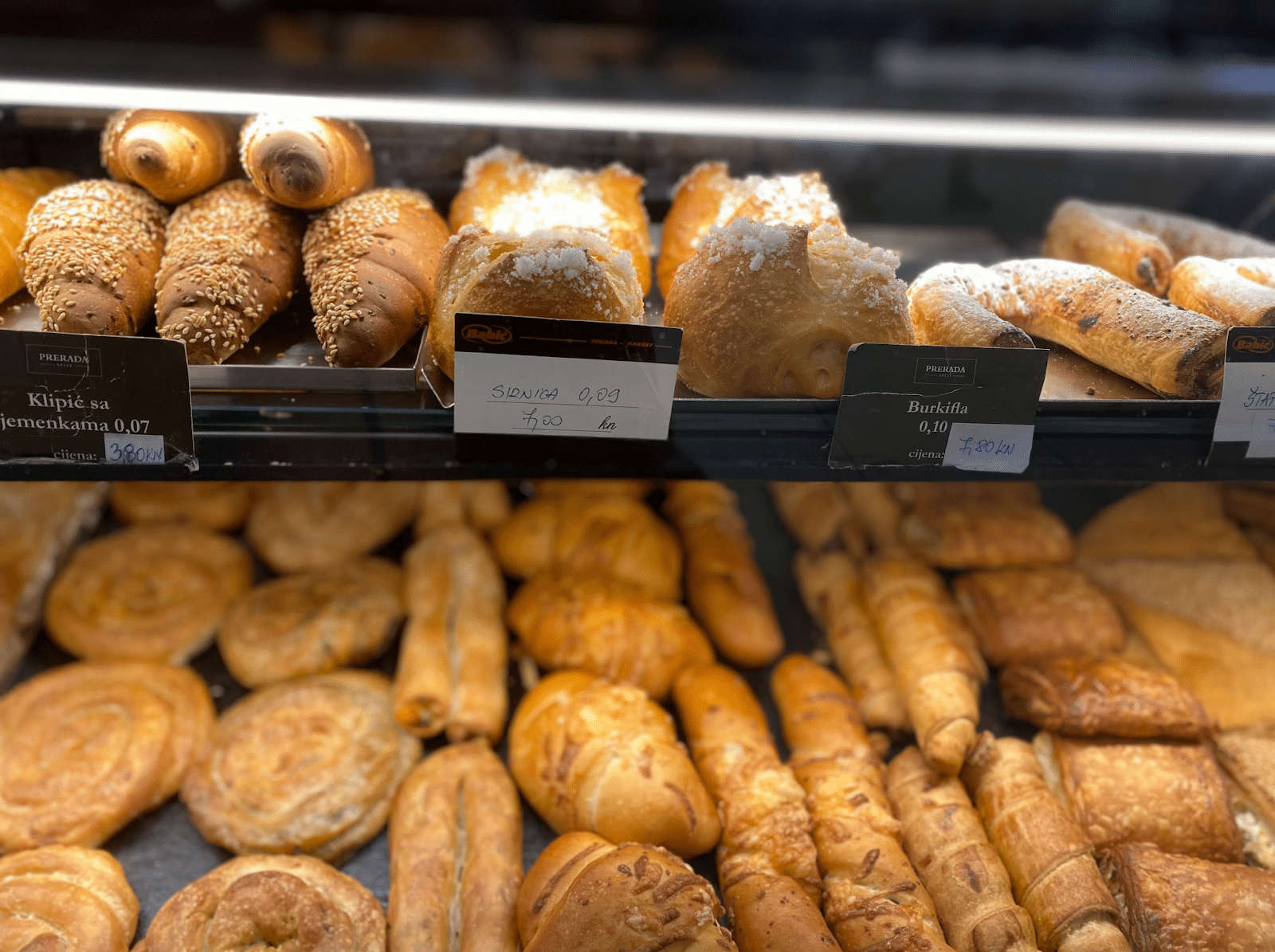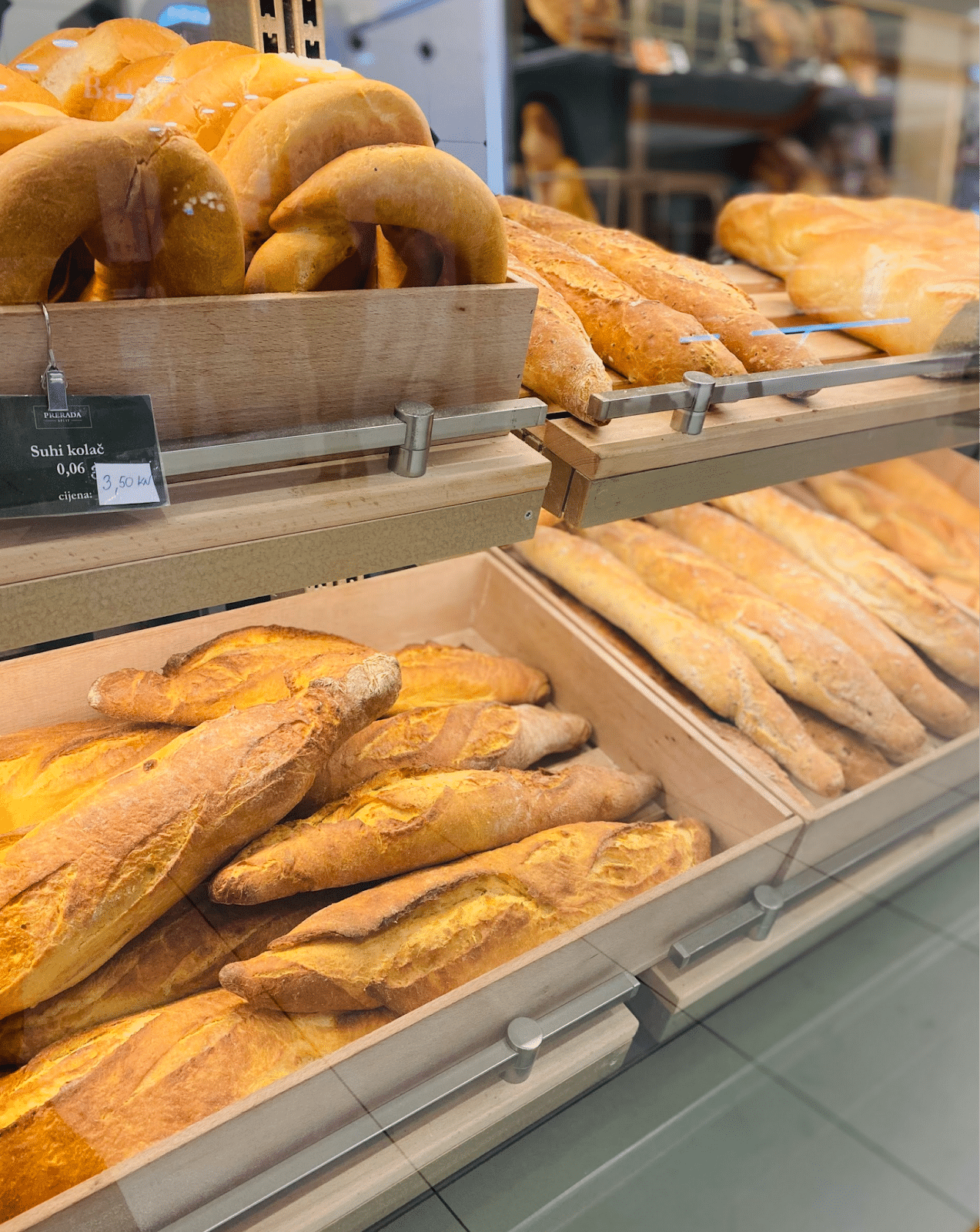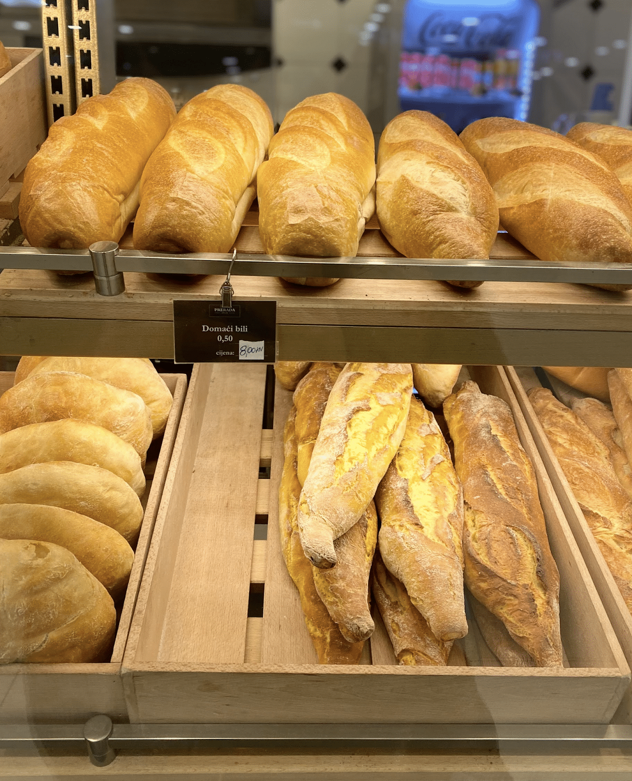 u pekarnici | u (lokalnoj) trgovini | u supermarketu |