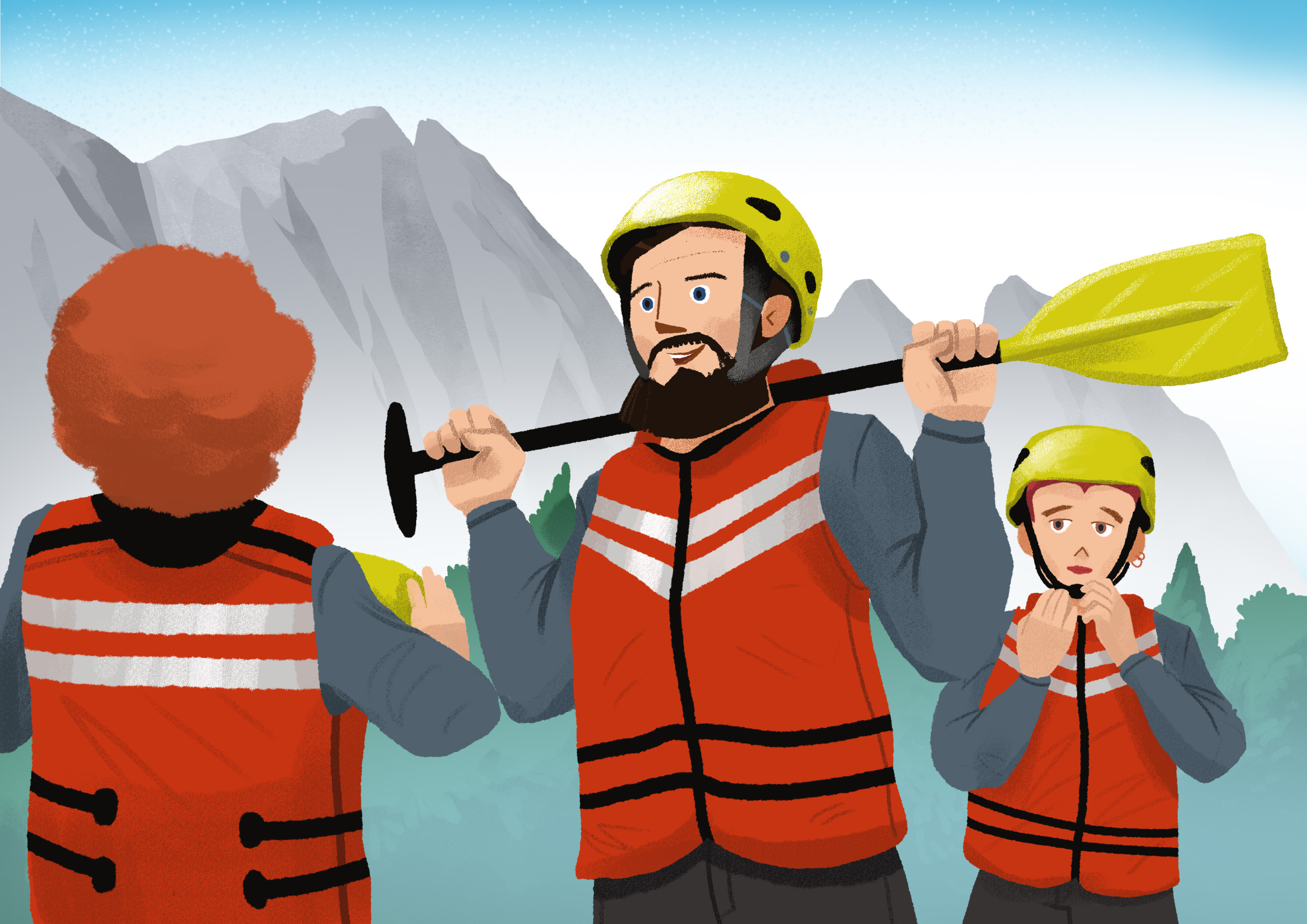 Davor:  Daaa! Dolazim ovdje već godinama. Svi se dobro poznajemo. Dođi da te upoznam s društvom. Ovo su Branimir, Zoran i Siniša. Poznajemo se još od osnovne škole. A ovo su Jerko i Mislav. Zajedno igramo nogomet vikendom.