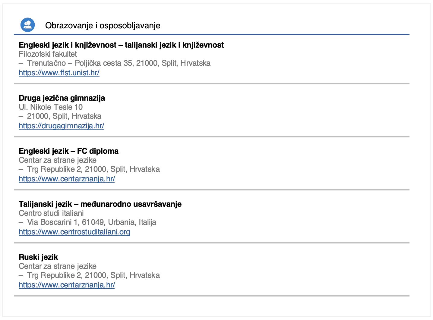 Radno iskustvo | |