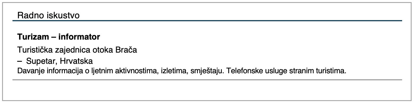 9.2 Zadatak 9. Curriculum Vitae