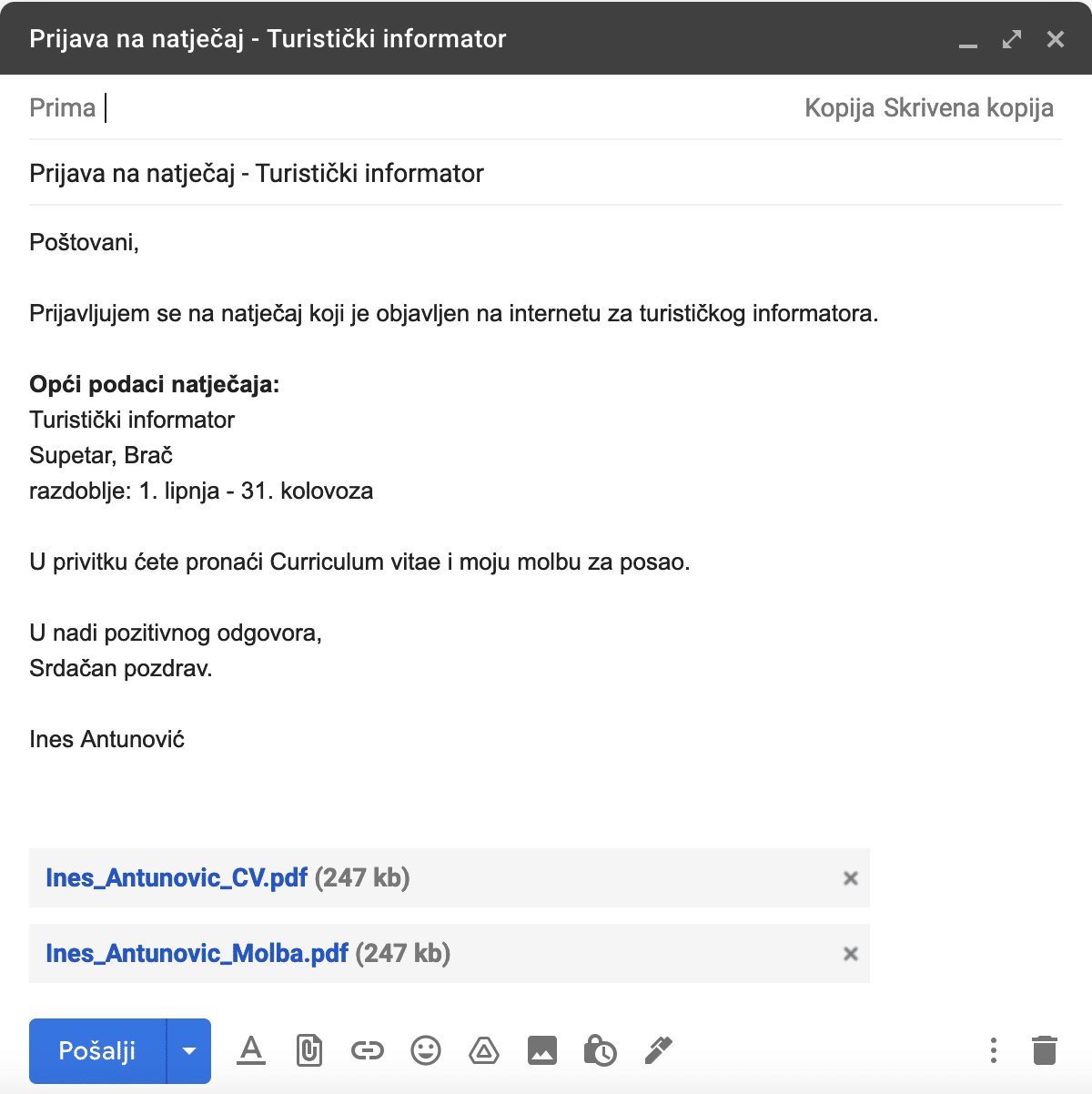 9 | Što je još Ines poslala zajedno sa CV-om? |
